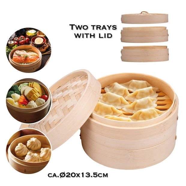 Ontdek de charme van gezond koken met ons tweelaags bamboe stoommandje! Perfect voor het bereiden van een breed scala aan gerechten, van groenten tot dim sum, op een natuurlijke en voedzame manier. Dit handige keukenaccessoire bestaat uit twee stapelbare niveaus, waardoor je meerdere ingrediënten tegelijkertijd kunt stomen. Plaats het stoommandje eenvoudig boven een pan met kokend water en laat de stoom het werk doen. Je eten wordt gelijkmatig en zachtjes gestoomd, waardoor alle smaken en voedingsstoffen optimaal behouden blijven. Maak je keuken compleet met dit essentiële stoommandje en geniet van gezondere maaltijden, elke dag weer!