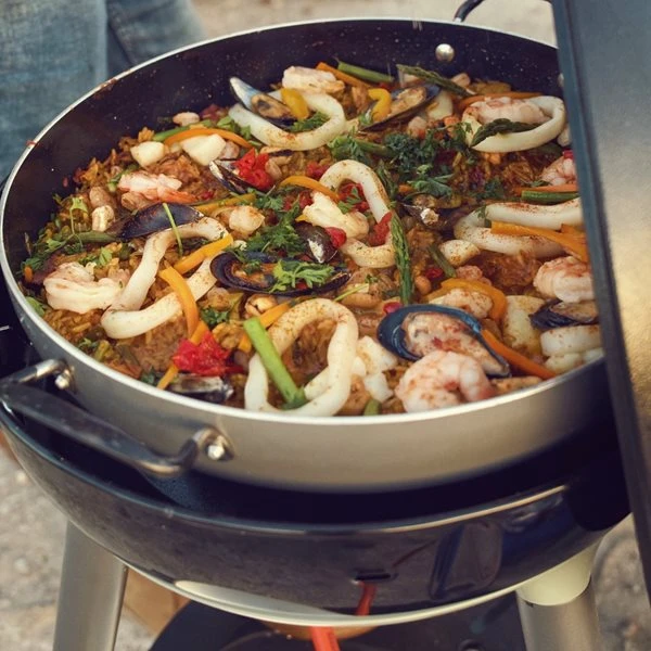 De Paella pan 40 is geschikt voor de Cadac Carri chef 40 serie, de Citi chef 40, het gasfornuis en een elektrische kookplaat. Houd er rekening mee dat deze Paella pan alleen op jouw eerdergekochte Cadac skottelbraai past met een pandrager. Heb je een nieuw model skottelbraai uit 2023? Dan past deze Paella pan er zonder pandrager op.
