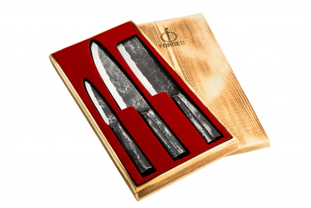 Sta jij graag in de keuken alsof het een woeste buitenexpeditie is? Nou, pak dan je uitrusting maar in, want met de Forged Brute 3-delige messenset ben jij helemaal klaar voor elk culinair avontuur! Bereid je voor op de flair van een stoer koksmes, het brute vermogen van een veelzijdig hakbijl en de precisie van een scherp universeel mes. Deze set is niet zomaar gereedschap; het zijn je trouwe metgezellen op het slagveld van de keuken.