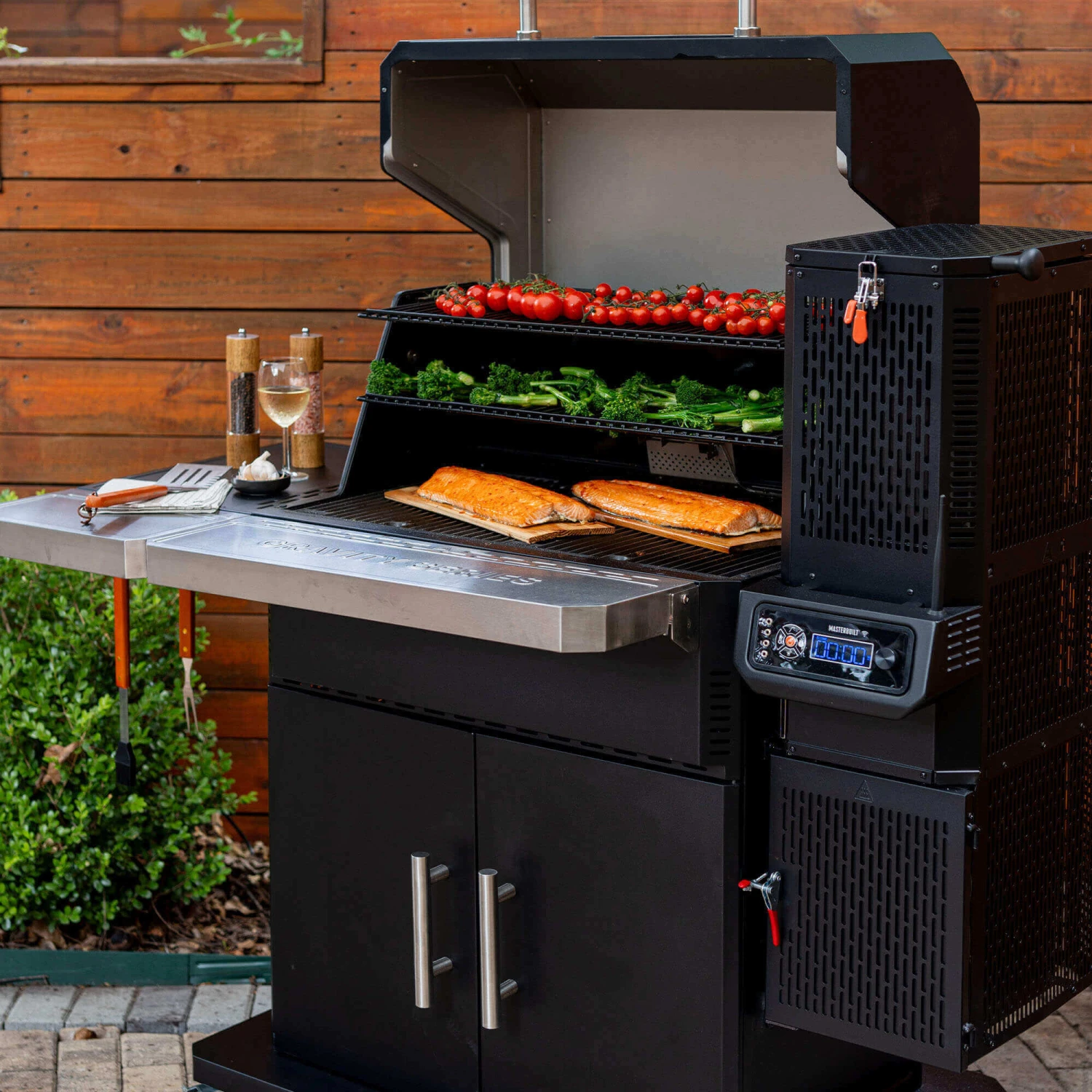 Deze Masterbuilt Gravity Series 1150 grill- en rookcombinatie tilt je barbecue-ervaring naar een hoger niveau. Hij is voorzien van automatische temperatuurregeling, en de app maakt het gebruik van de barbecue nóg gemakkelijker. Vul de GravityFed-trechter met houtskool, stel de kooktemperatuur in op het digitale bedieningspaneel of met de Masterbuilt-app en laat de barbecue het werk doen. Met de Masterbuilt Gravity Series 1150 is het mogelijk om te roken, schroeien, braden en bakken terwijl je de ongeëvenaarde smaak van barbecueën op houtskool behoudt.