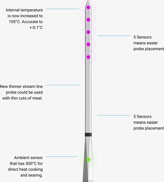 Ontdek de perfecte temperatuur van je vlees met de Meater Block Pro XL. Deze draadloze thermometer is slim en biedt veel meer precisie en gebruiksgemak dan andere vleesthermometers. Met de app wordt je stap voor stap begeleid tot de perfecte garing.