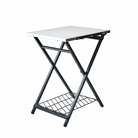 Het blad van de tafel is gemaakt van duurzaam roestvrijstaal, van hoge kwaliteit. Het frame van deze opvouwbare tafel heeft een speciale poedercoating van koolstofstaal.Â