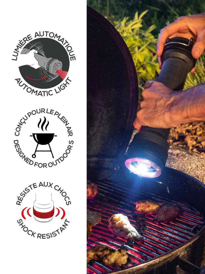 Ontdek de revolutionaire BBQ molen van Peugeot, een echte gamechanger voor elke barbecuefan! Deze eerste handmatige molen met ingebouwde verlichting maakt jouw grillervaring niet alleen makkelijker, maar ook stijlvoller. Met de handige ring neem je de molen overal mee naartoe, hang je hem simpel aan de barbecue, en heb je hem altijd snel bij de hand.