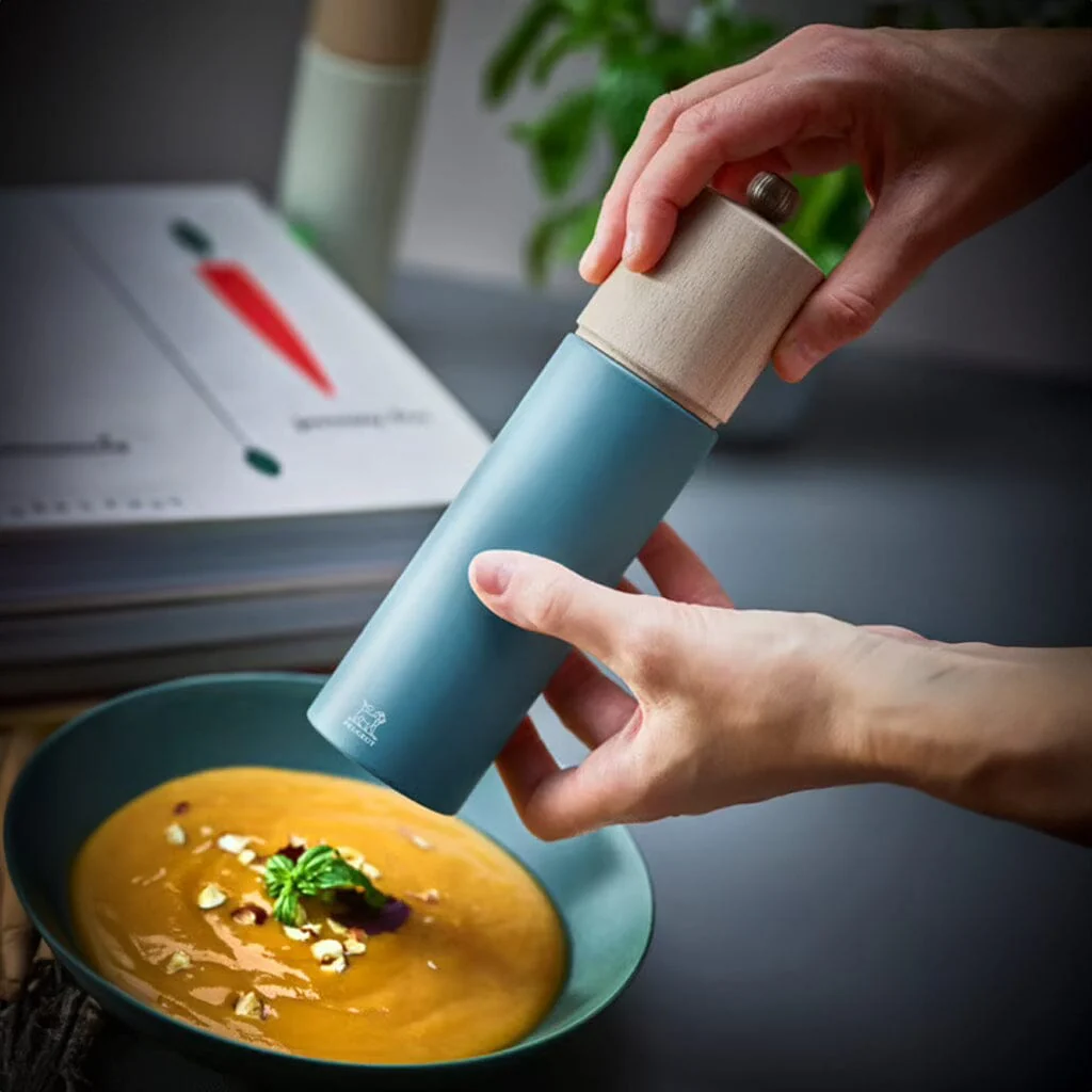 De Peugeot Boreal pepermolen in hemelsblauw brengt stijl en functionaliteit naar jouw keuken met zijn minimalistisch ontwerp en subtiele kleuren