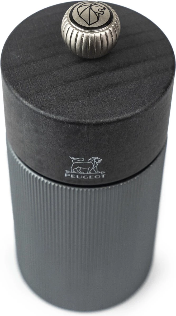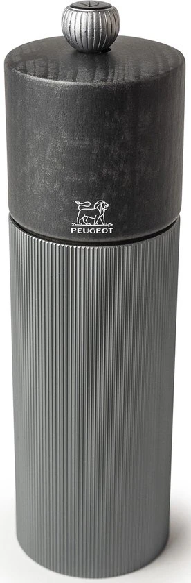 De prachtige Line pepermolen van Peugeot combineert zwart gekleurd hout met carbonkleurig aluminium, waardoor een elegant en visueel aantrekkelijk tafelmodel ontstaat