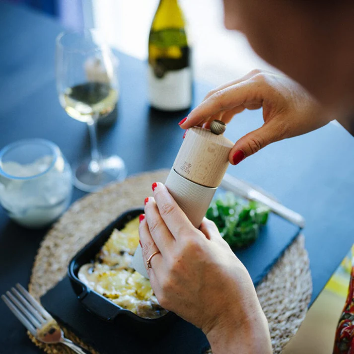 Ontdek de Peugeot Line zoutmolen in carbon aluminium, een must-have voor elke keukenprins(es) die waarde hecht aan precisie en stijl. Deze 18 cm hoge zoutmolen is niet alleen een blikvanger, maar ook een meester in functionaliteit. Speciaal ontworpen voor het malen van zout, biedt het hoogwaardige RVS maalwerk een consistente en efficiënte prestatie.
