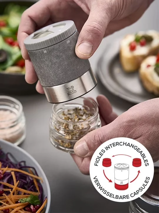 De molen komt met twee gemakkelijk verwisselbare reservoirs, waardoor je snel kunt wisselen tussen verschillende soorten zout of aromatische mengsels. Ideaal voor het experimenteren met smaken en het toevoegen van een persoonlijke touch aan elk gerecht.