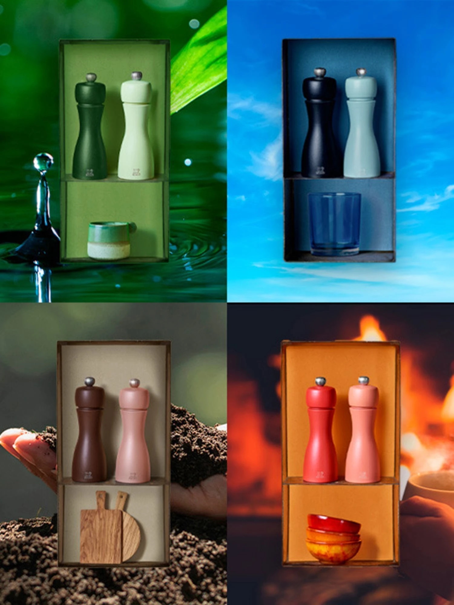 De molens worden gemaakt van duurzaam hout en ze hebben een instelbare maalgraad