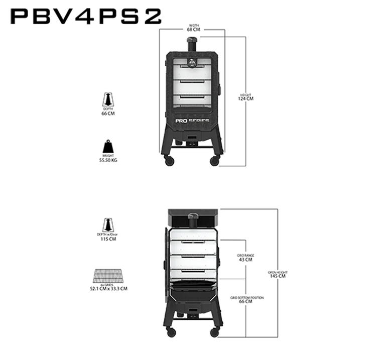 De Pit Boss Pro V4P Pellet Smoker maakt het bereiken van een echte houtsmaak eenvoudig, toegankelijk en slim. Deze grill is niet alleen groot, zwaar en extra heet, maar ook slim. Hij is uitgerust met Wi-Fi en Bluetooth-technologie. Dit zorgt ervoor dat je met de Pit Boss SmokeiT™-app onder meer je temperatuurinstellingen kunt regelenen de vleessensoren van je smoker kunt controleren. Deze smoker is ondanks zijn krachtige vermogen toch compact en draagbaar. Met de vier gemakkelijk te manoeuvreren wielen rijd je hem eenvoudig overal naartoe. De smoker beschikt over vier porselein gecoate rekken, zodat je altijd voldoende instelbare kookruimte hebt.