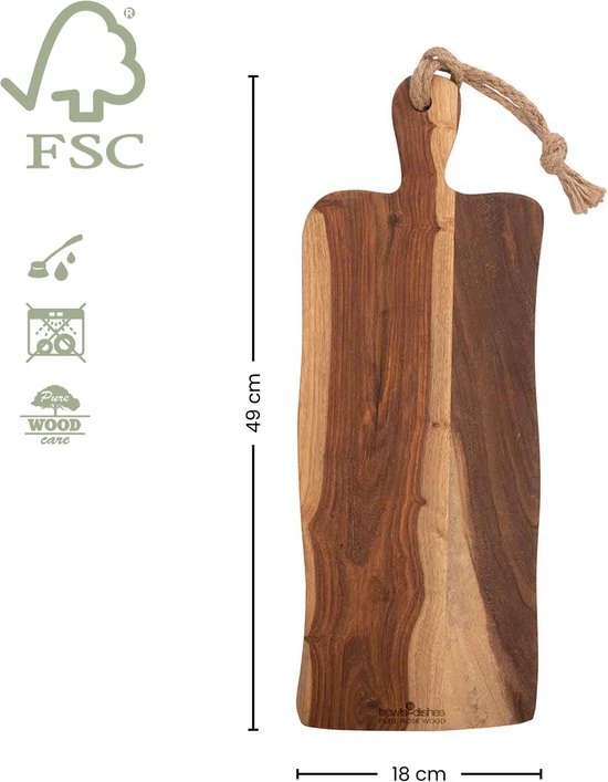 Je kunt de serveerplank het beste regelmatig onderhouden met onderhoudswax om hem zo lang mogelijk mooi te houden. De wax zorgt ervoor dat de kleur en de glans van je snijplank mooi blijven. Ook voorkom je hiermee dat er na verloop van tijd scheuren in het hout ontstaan. De plank is niet geschikt voor de vaatwasser. Was hem in plaats daarvan af met water en zeep. Zorg dat hij goed opdroogt voordat je hem neerlegt. Zo voorkom je dat er vlekken ontstaan.