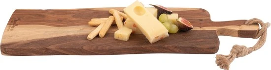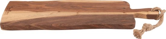 Deze rustieke serveerplank van Bowls and Dishes geeft je borrel of barbecue net dat beetje extra. De plank is gemaakt van duurzaam en robuust Rose Wood hout. Het hout is licht en donker gevlamd, wat zorgt voor een robuuste look. Elke serveerplank heeft zijn eigen unieke tekening. Het oppervlak is natuurlijk gevormd en dus niet altijd helemaal vlak. Hierdoor ziet de plank er extra karakteristiek uit. Het juten touw aan het handvat is ideaal om je borrelplank aan op te hangen. Bovendien zorgt het voor een stoere look.
