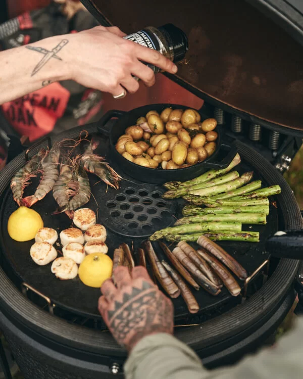 Door het gebruik van deze Plancha van The Bastard verander je het grillrooster van de Kamado in een echte Plancha.