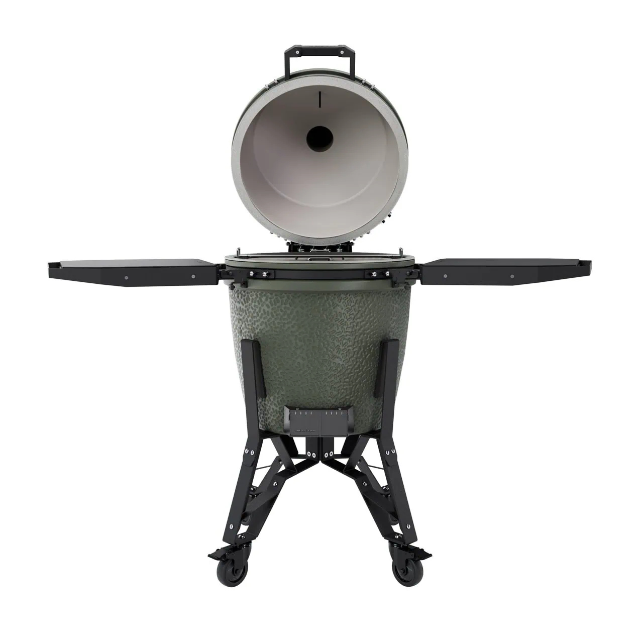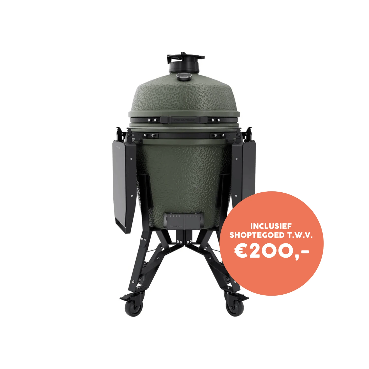 De Bastard Pro luidt een nieuw tijdperk in voor het Nederlandse kamado-merk dat al jarenlang tot de top behoort. Wat gebeurt er als je een al uitstekend product nog verder verfijnt? Dan krijg je de Bastard Pro. Deze uitvoering onderscheidt zich duidelijk van zijn voorgangers én van andere kamado’s dankzij doordachte verbeteringen in ontwerp en functionaliteit. Zo beschikt hij over een vernieuwde top cap, een verstelbaar hitteschild van gietijzer en een stevig onderstel met praktische zijtafels. Een kamado die niet alleen indruk maakt bij elke barbecue, maar ook ontworpen is om jarenlang mee te gaan.