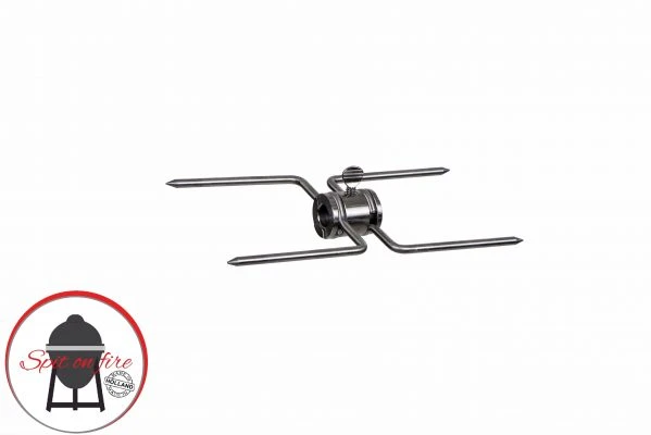 Waar gewone vorken vaak tekortschieten, pakken de Spit on Fire Dubbele Vorken flink uit. Met hun robuuste ontwerp klampen ze zich vast aan je kostbare cargo alsof ze nooit meer los willen laten. Of je nu een groot, imposant braadstuk hebt of een paar kippen wilt roosteren voor de familie, deze vorken laten je niet in de steek. Door hun unieke ontwerp blijft het vlees stevig op zijn plaats en draait het mooi gelijkmatig mee, zodat elke centimeter de liefde van de grill krijgt die het verdient.