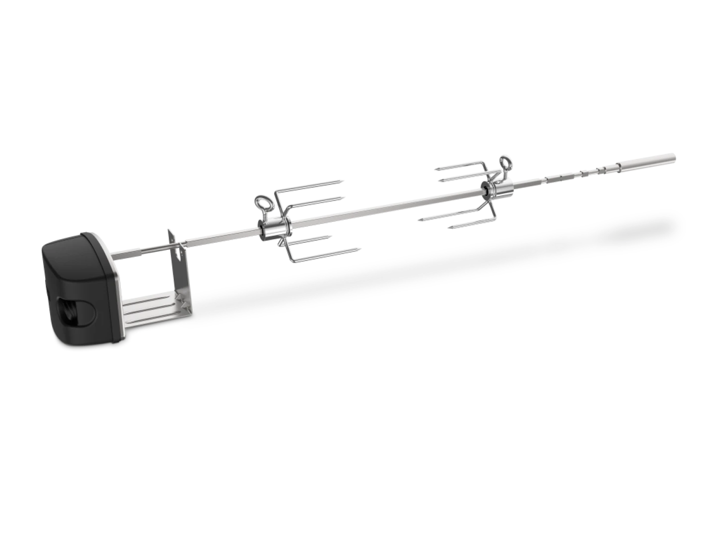 Aan dit Braadspit draaien gerechten langzaam rond boven het grillrooster van de barbecue, op deze manier garen de gerechten langzaam of snel, afhankelijk van de gekozen temperatuur. De gerechten garen op deze manier in hun eigen vocht en vleessappen, waardoor ze mals blijven en extra smaak krijgen.