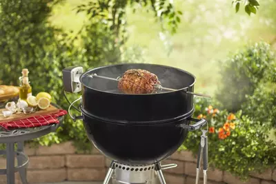 Zet je schrap voor een smaaksensatie die je barbecue naar een hoger niveau tilt! Met de Weber Braadspit Rond verander je je 57 cm houtskoolbarbecue in een next-level rotisserie. Ideaal voor die lange zomeravonden waarop je zin hebt om op je gemak een perfect gegaard kippetje of een krokant stuk buikspek te laten draaien terwijal je geniet van een goed glas wijn.