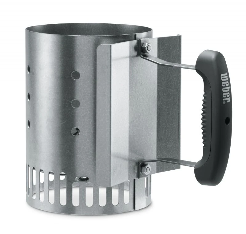 Met deze kleine brikettenstarter van Weber steek je de briktten of het houtskool snel aan.