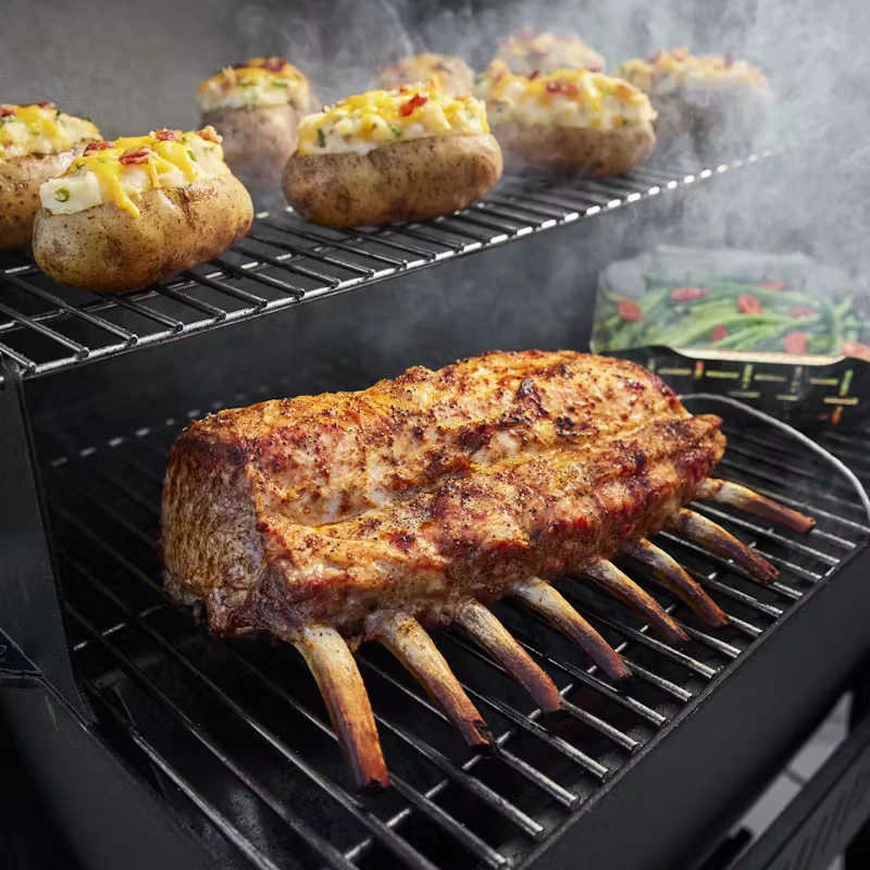 Ontdek de functionele en elegante Weber Searwood Pellet Barbecue. Deze barbecue heeft een grilloppervlak van 61×45 cm en heeft een temperatuurbereik van 80°C tot 315°C. Dit maakt hem ideaal voor braden en roken. Door de Weber Connect en Smokeboost slimme controller is de bbq in slechts 15 minuten klaar voor gebruik. De barbecue heeft een kookoppervlak van 61×45 cm en heeft een gelijke warmteverdeling over het gehele kookoppervlak. Je kunt de barbecue combineren met Weber Works en Weber Crafted tafels.